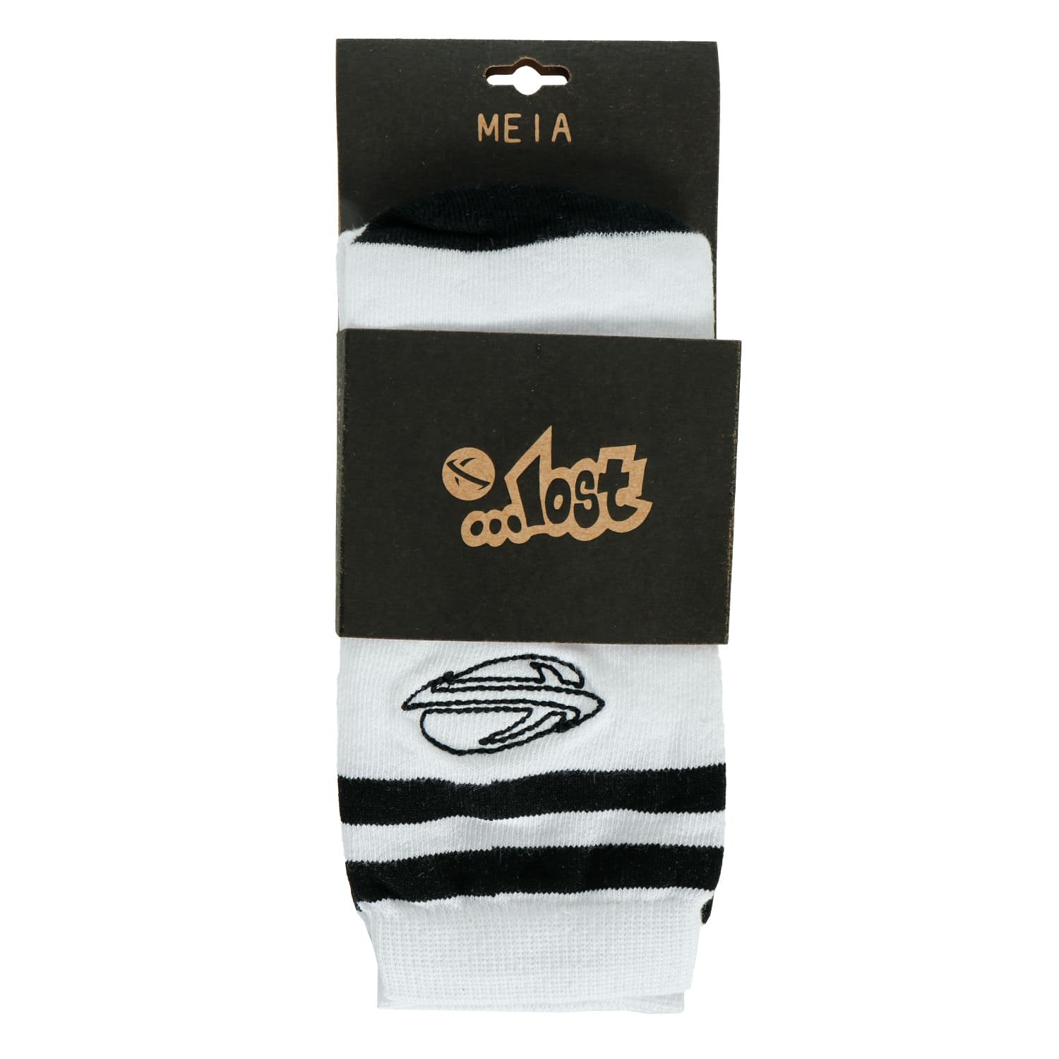 Meia Lost Full Branding Branco/Preto