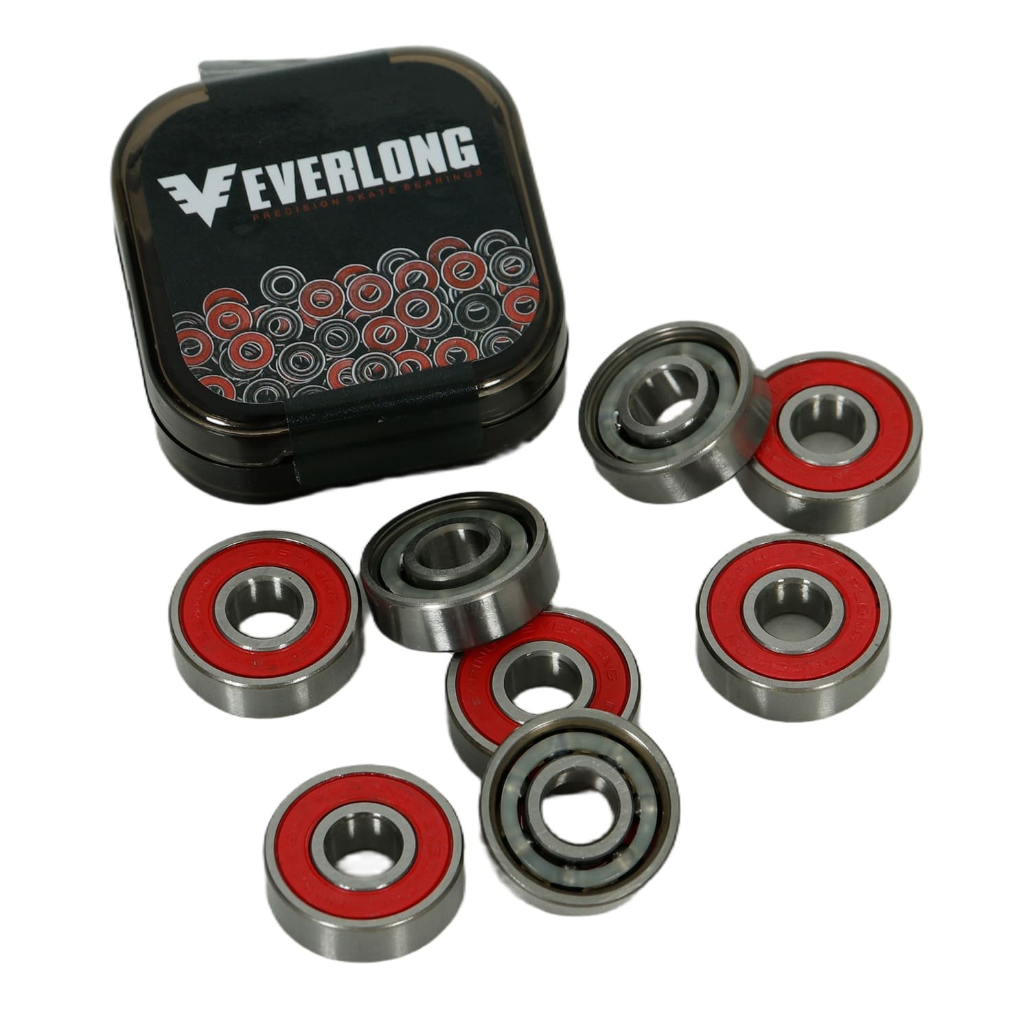 Os rolamentos da Everlong são fabricados para skates e longboards, com óleo especial lubrificado e com resistência e velocidade. Eles possuem blindagem removível e espaçadores de nylon de desempenho superior. Acompanha 08 rolamentos. As cores dos produtos podem variar de acordo com monitor/tela.